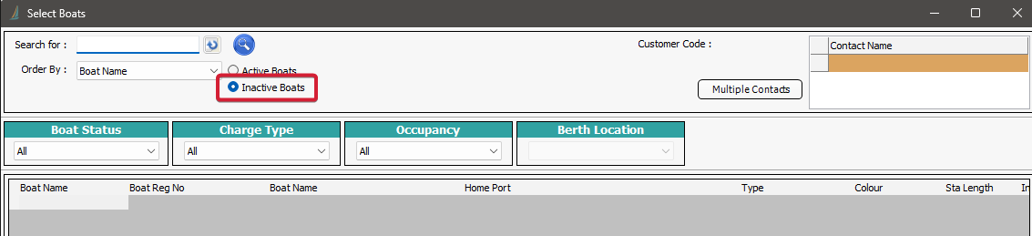 3) Enter the boat you are looking for and select Inactive Boats