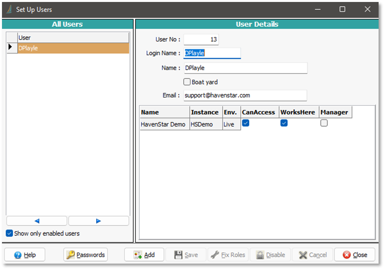 1) Open Setup Users in Havenstar by either searching for this or by going to Configuration > Setup Users: