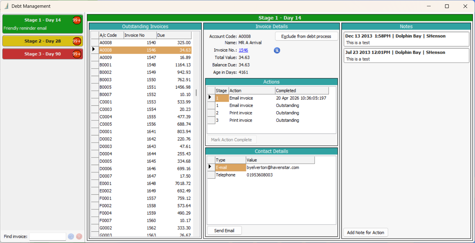 Havenstar's Debt Management module is a new module for automating and streamlining debt-chasing processes. It enables you to create a defined escalation process, ensuring that all users follow the same steps.