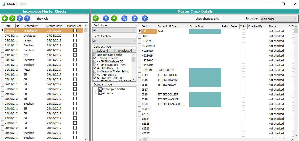 4) There is now a feature to enable you to filter the dock check list based on berth types, berth location, contract type and occupant type. Set these filters as required for the check. This is designed to make it easier if you only want to check boats stored ashore not in the marina for example.