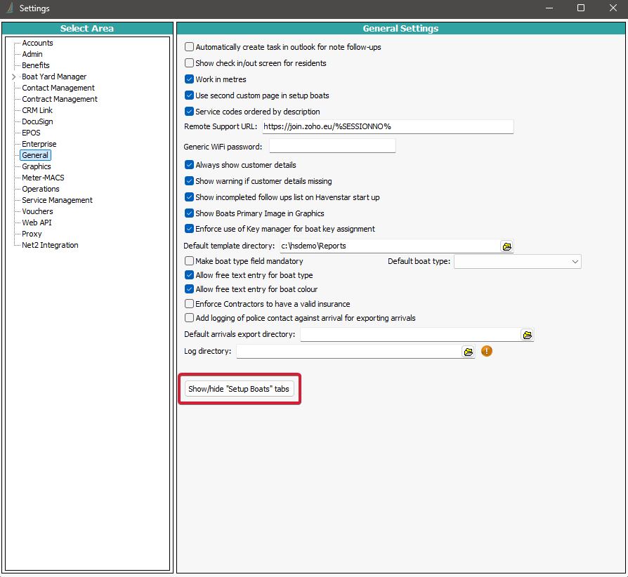 1) Simply go to Settings > General > Show/hide "Setup Boat" tabs: