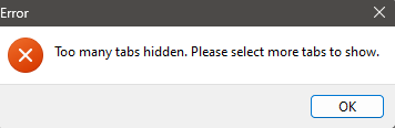 If you do not have enough tabs selected to counter this, you'll be presented with the following error: