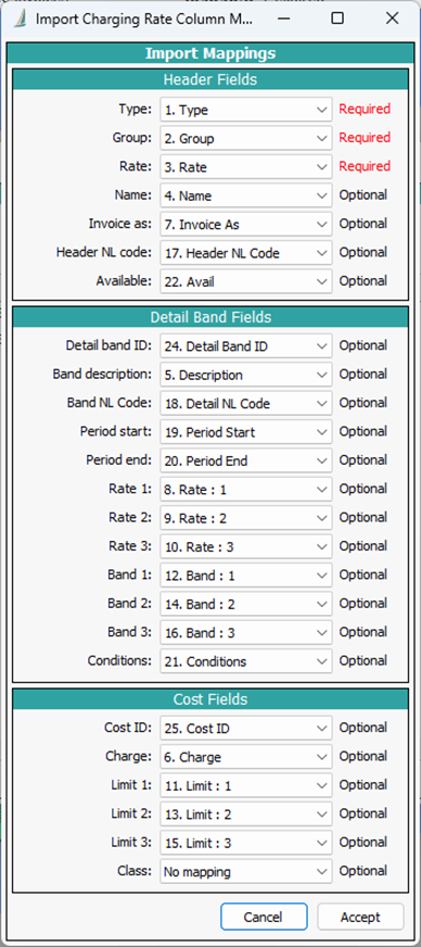 Mapping the columns is a mandatory step, but if you haven't changed any of the column names from the original export, they will all be detected automatically, and you can just click Accept to continue.