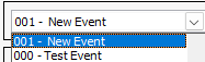 Screenshot of event selection drop-down box in the Special Event Configuration screen.